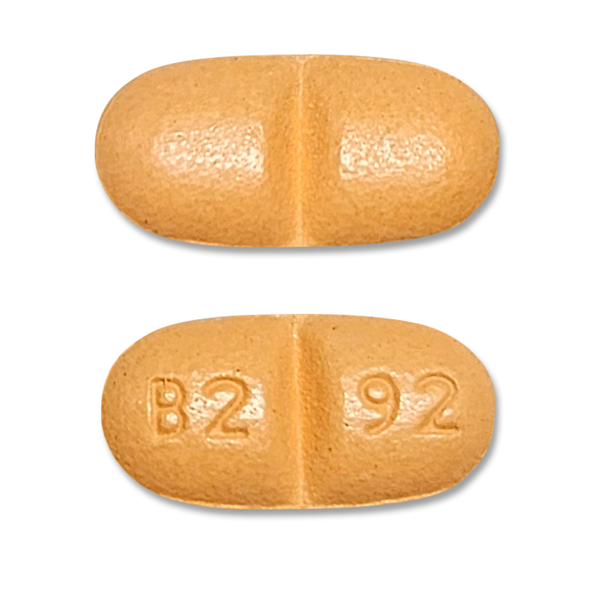 Beige, film-coated, modified oval tablet scored on both sides, debossed “B292” on one side and plain on other side.
