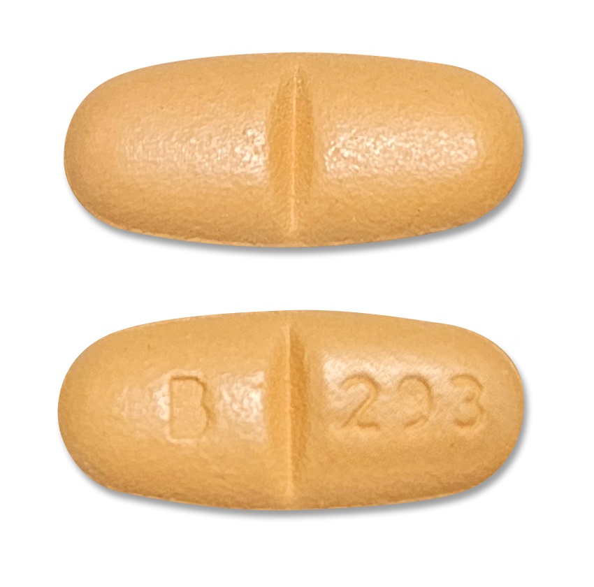 Beige, film-coated, modified oval tablet scored on both sides, debossed “B293” on one side and plain on other side.