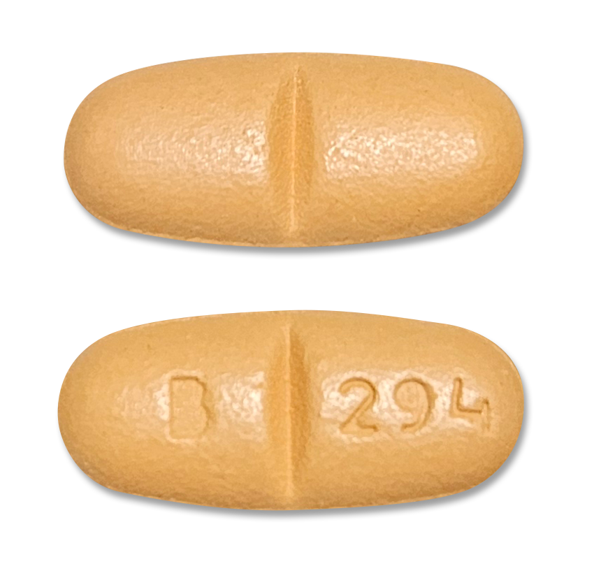 Beige, film-coated, modified oval tablet scored on both sides, debossed “B294” on one side and plain on other side.